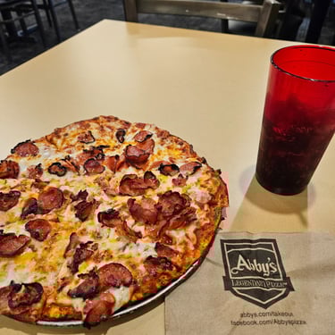 The view from up there was just incredible, but cell reception was nowhere near as clear, so I begrudgingly came back down the mountain to find a place to sleep for the night. Not so easy a prospect as the day was unseasonably warm at 97º F (36º C), so I broke down and just found a hotel room in Gresham, OR. All I have to say is "AIR CONDITIONING." Of course, I didn't check in until treating myself to one of my childhood all-time favorites. Abby's Linguicia pizza! Goooood stuff, man.
