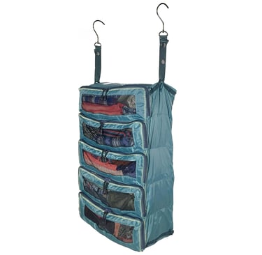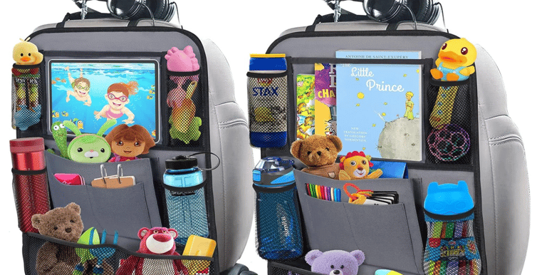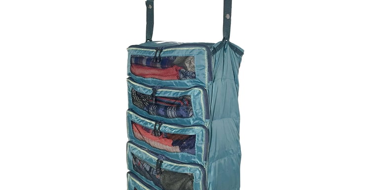 I have this sitting right in back of the seat, and then I wrapped the hooks around the headrest to keep it upright. It has been a very effective dresser to easily access my clothes. Bonus, the top is a nice shelf for when I want to lay my phone or something else down while I sleep.