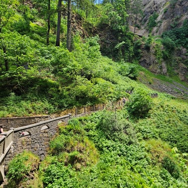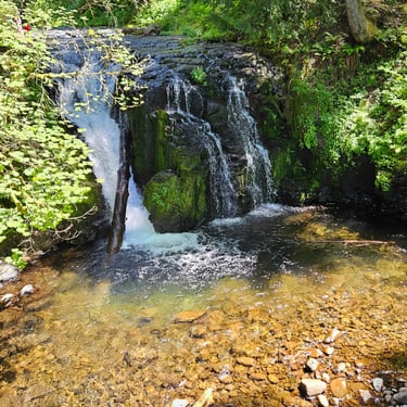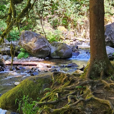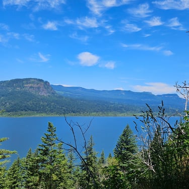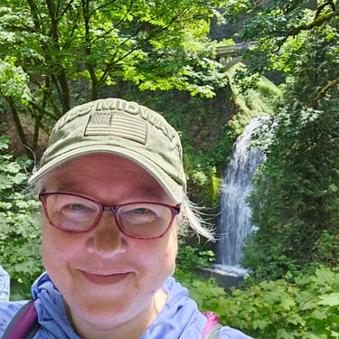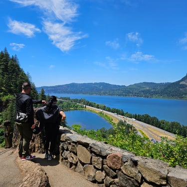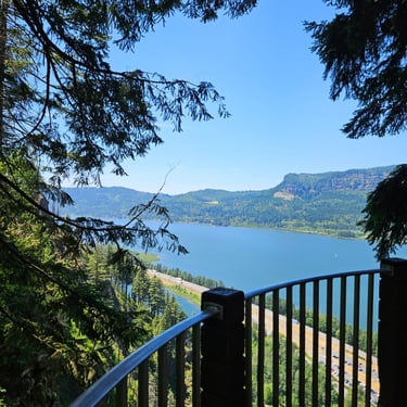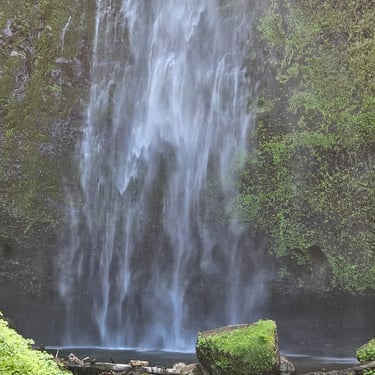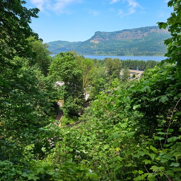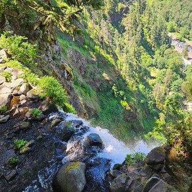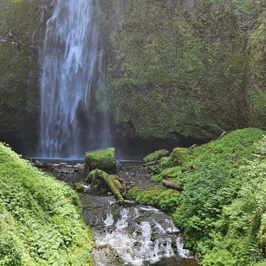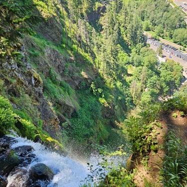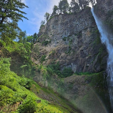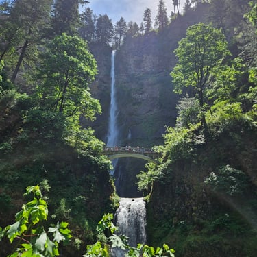I cannot begin to tell you the emotions that surface when standing in front of Multnomah Falls. The roar of the rushing water. The curtain of lacy water drops. The cool mist blowing off the falls. The Pacific Northwest foliage covering the area. The sheer majesty of all 620 feet (189 m) of cascading water dropping off the cliff-face. Not to mention the views from the ascent to the top. Or the gorgeous stream that feeds the falls.